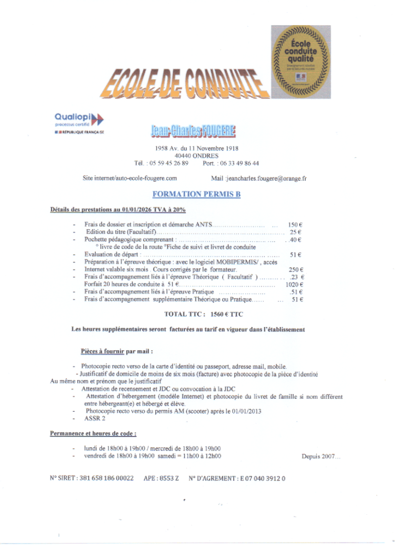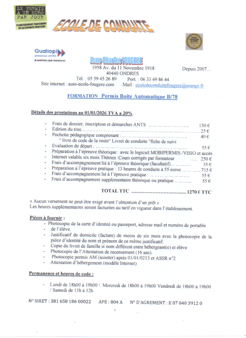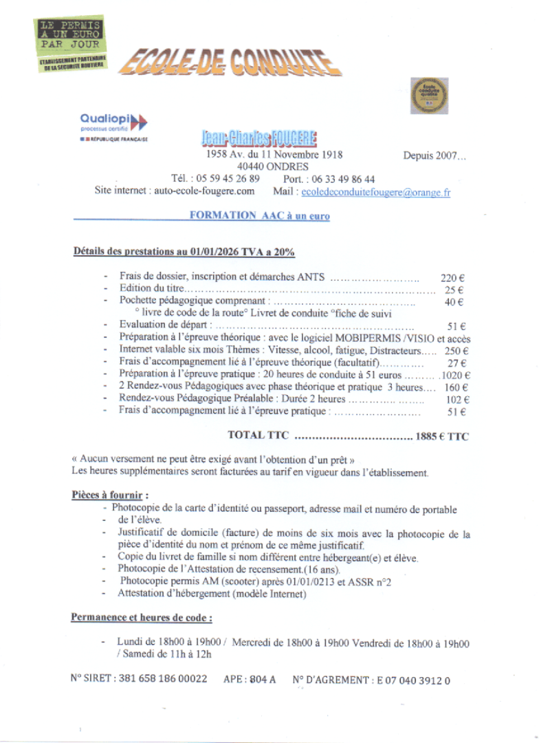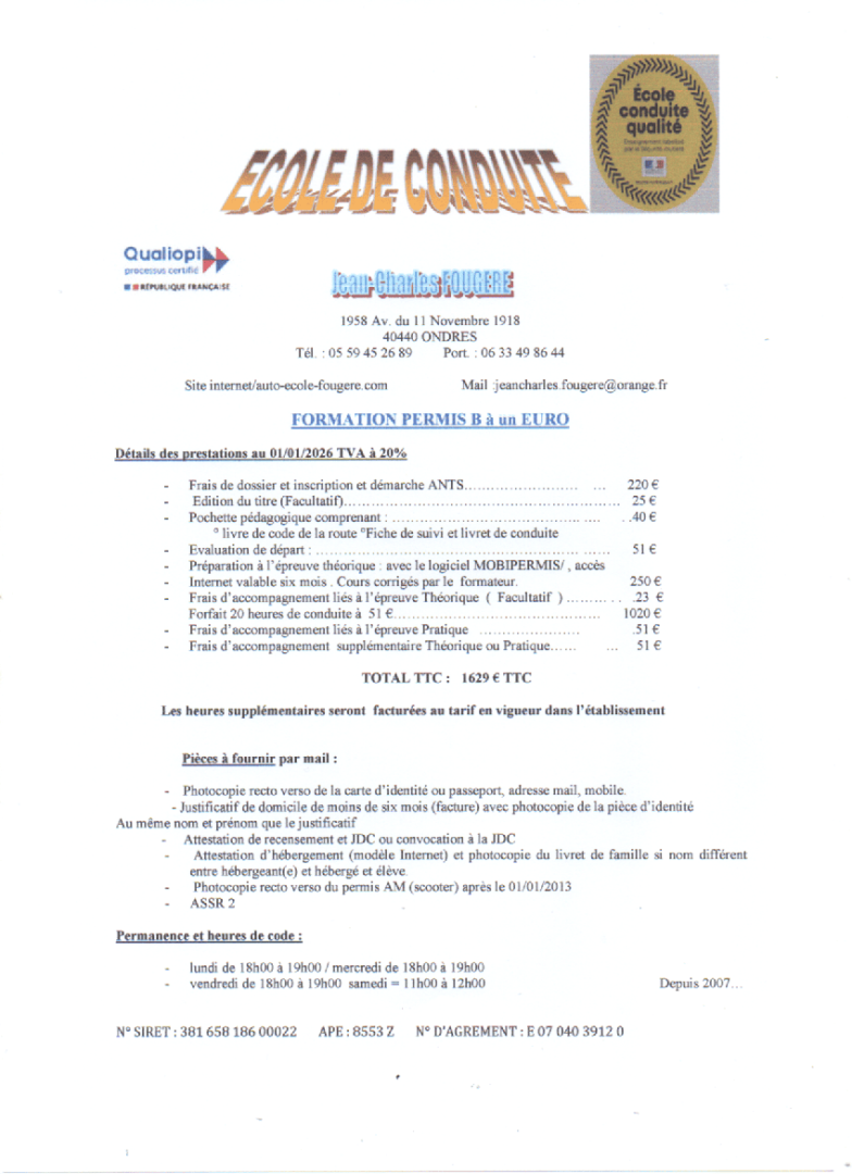 - Préparation à l'épreuve Théorique avec accès internet et cours corrigés par formateur valable six mois.