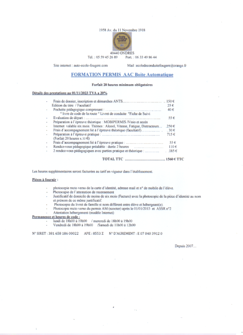 - Frais d'accompagnement à l'épreuve théorique (Facultatif)